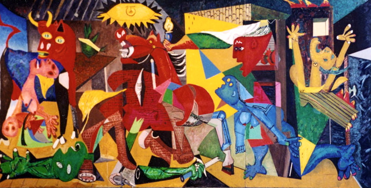 “Michael says, “I made ‘Guernica, After Picasso’ –the seventh or so painting I had ever made. It was difficult because of lack of experience and I was recovering from a failed knee replacement. I had to learn everything and I had to rest the knee every now and then.” It took a month to make the painting.